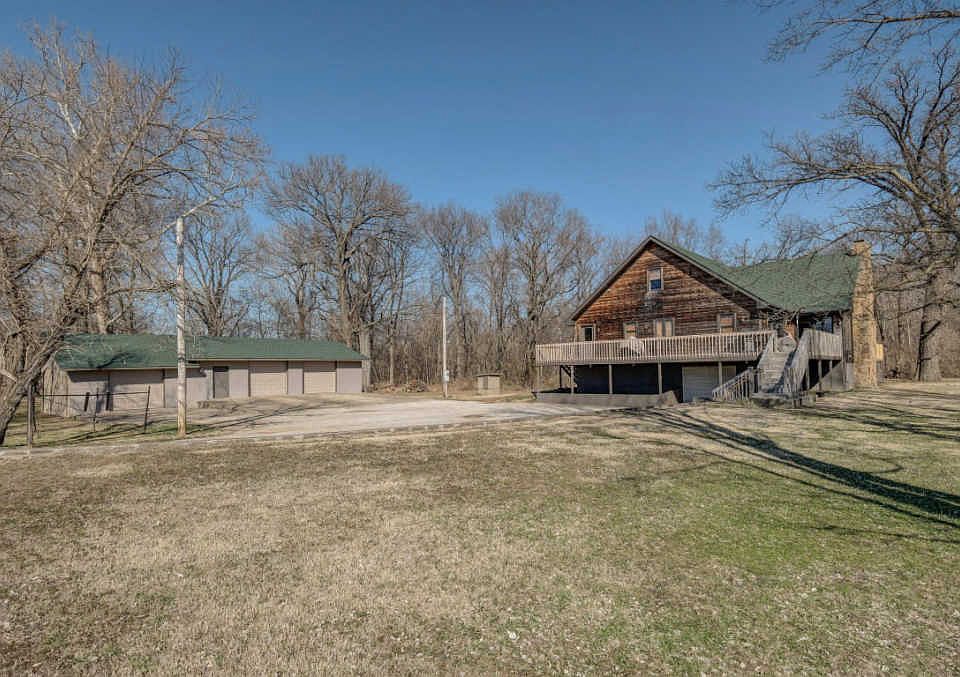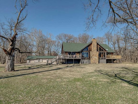 Stunning waterfront getaway! Sitting on almost 2 acres this home has direct access to Spring River as well as a personal dock & surrounding wooded area. View the peaceful scenery from the soaring floor-to-ceiling living room windows while enjoying the stone fireplace, cathedral ceilings, unique chandelier, & open concept. Complete with a formal dining room as well as a breakfast nook & eat-in bar in the kitchen, plus granite kitchen counters and a built-in double oven and microwave. 4 spacious bedrooms with the master having private porch access and double vanity sink and jetted tub in the bath. Large utility room with utility sink, a 2 car drive under garage with storage space, as well as a detached 3 car garage. The area and details this home has to offer are beautiful!