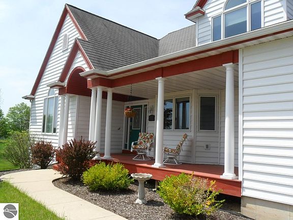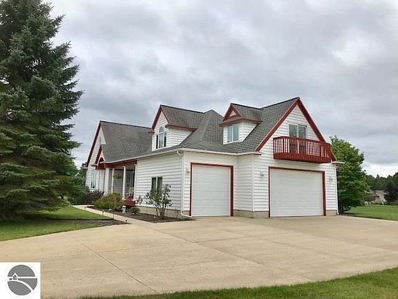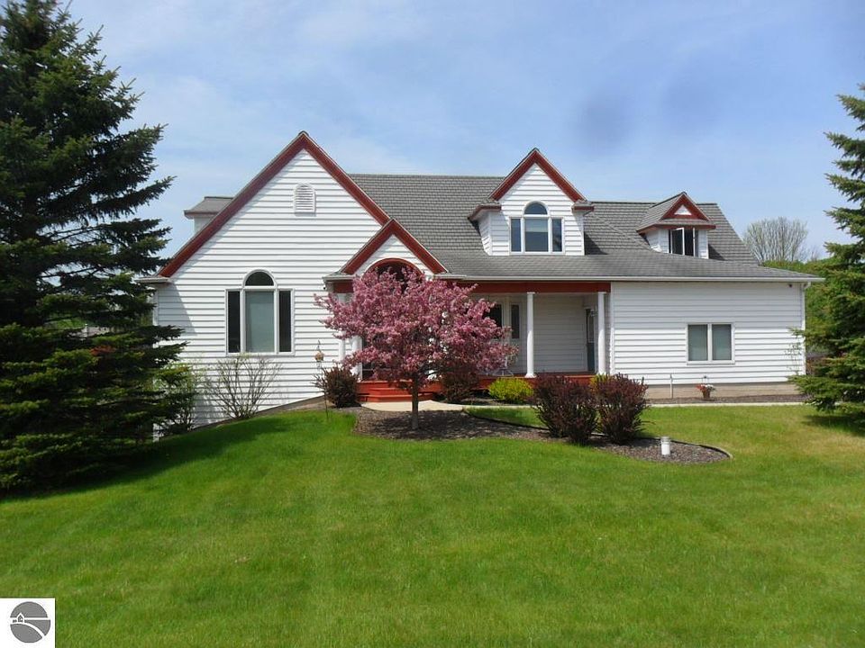 Exceptional 4 bedroom, 4 bath home with full basement, that is partially finished and 3 car attached garage. Home sits on 1.7 acres with landscaped yard and in ground sprinkler. Home features 2 sided gas fireplace, hardwood floors, formal dining room, wet bar, cover front and back deck, paved driveway and central air. Close to Cadillac, Lakes and golf course.