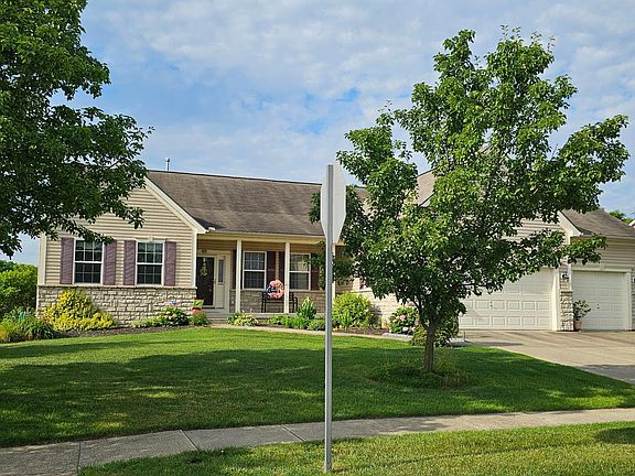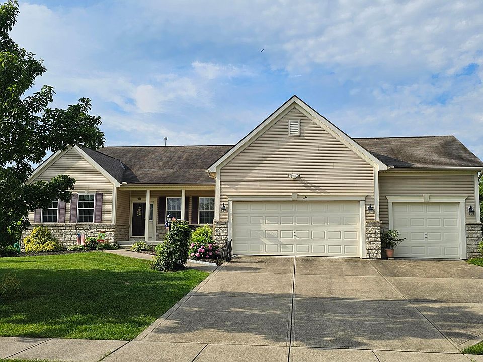 Sip lemonade on the front porch of this immaculate, open floor plan RANCH offering 4 BR/2 BA/ 3 Car Garage Ranch with concrete driveway. This home is situated on a good-sized lot backing to privacy. Find perennials and superb landscape surrounding the home and patio. Find high ceilings, 6 paneled woods doors and hard wood flooring throughout the first floor. The home has been neutralized and freshly painted for a move-in ready appearance. Find Granite bar and counters in the kitchen. GR offers a fireplace and a back door to the patio. All BR's all spacious and the 4th BR can be used for a first-floor den. Find poured, high walls in the basement w/concrete cap in the crawl space, waiting to be finished. Pickerington Schools, Great Neighborhood, Move-in Ready for this awesome ranch.