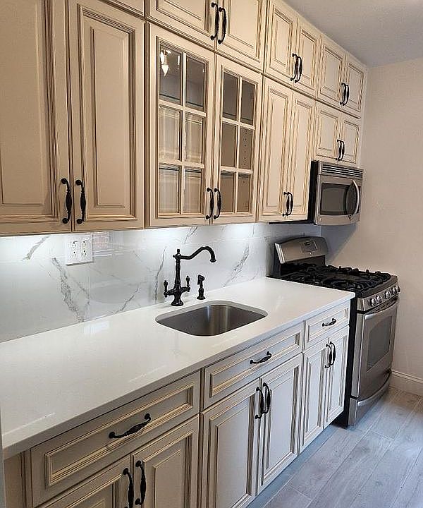 Gut renovated, Immaculate and modern one bedroom, One bath apartment with super LOW maintenance. Some of the features include: -Tile flooring throughout apartment. -Living room with recessed lighting. -Kitchen details include white granite counter tops, slow close solid wood cabinets and drawers, stainless steel appliances, and wood pattern ceramic floor tiles -Plenty of closet space throughout. -Modern c black and white bathroom with marble swirl tiles. -Windowed bathroom and kitchen. Built in 1956, Queen Mary Anne occupies an entire block. All four building facades are beautifully landscaped and well maintained. Conveniently located for transportation, shops, schools, year round farmers market and newly renovated Travers Park. Building amenities include on-site super, wait-list garage parking, laundry facilities and storage. Pets are welcome! (Dogs must be under 25 lbs)description