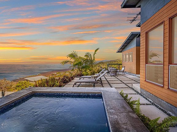 From the moment you walk to the front door of Hale Pulelehua "The Butterfly House" you will find a custom designed home featuring a long list of excellent features to elevate your lifestyle away from the city. Milolii never looked so good! Modern design and styling throughout the home Spectacular sweeping ocean views 10 panel solar PV on Net Energy Metering Beautiful 12"x24" tile throughout the home 4'x11' Indonesian Basalt tile island with gas cooktop Indonesian Basalt tile countertops Custom bamboo cabinets with modern brushed Nickle pulls Stainless steel refrigerator, dishwasher, oven, and microwave Massive cabinet space in the kitchen Louvered windows to allow airflow Vaulted 14' ceilings in living room 10' ceilings in bedrooms Bedrooms allow for direct access outside Butterfly roof design in the great room Riverstone flooring and Basalt tile shower with large picture window Outdoor shower with basalt tile Spa with ocean view, Basalt tile coping Tropical landscaping Artificial turf side yard Trex decking on side lanai with integrated steel cable wires Fenced property 10,000 gallon catchment tank Boat carport Detached storage shed