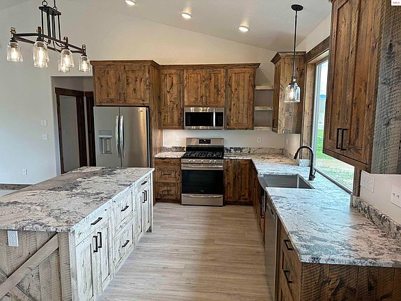 MUST SEE! New construction with unsurpassed quality! 1932sf 4BD 2.5BA ranch style home w/ flowing, open floor plan w/ lots of extras on .88 level, usable acres. Bright and inviting interior w/ vaulted ceilings, freestanding gas stove, wood interior doors (3 ft) and wood trim throughout. Custom wood cabinetry & granite counters, accent island w/ bar seating, stainless steel appliances & large pantry. Master suite w/ walk-in closet and vaulted ceiling. Easy care vinyl plank flooring. Oversized Laundry/ mud room w/ utility sink. Includes a whole house fan which allows you exchange the air with a flip of a switch. Oversized Att 2 car heated garage w/ dble doors & 2 car concrete pad, hosts the 4th bedroom and half bath for guests or office. Beautiful entry with wood and rock accents and custom front door. Fiber internet avail. Reclaimed asphalt driveway and some landscape. READY TO MOVE IN!