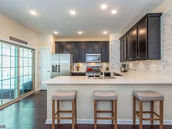 Spectacular upgraded 3 level townhome w 2 bedrooms, 2.2 baths in very desirable Kensington Square! Open floor plan boasts an amazing kitchen w Quartz Countertops, high ceilings, sliding glass door to a private back deck, Stainless Steel appliances, Farmhouse sink, pantry and breakfast area! Open to the dining living room space offering excellent natural light, 9' ceiling height, gas fireplace, beautiful floors and large windows. Upstairs features a primary bedroom suite w a fantastic oversized walk-in closet and private full bath w double sink vanity, soaking tub and separate stall shower! Second bedroom offers a private full bath as well! Do not miss the game, rec rm, family rm w powder rm, laundry rm and door to one car attached garage on the ground basement level! This home shows like a model! Beautiful grounds w outdoor pool and hiking biking paths. Clubhouse w meeting room, billiard room, kitchen and gym! Convenient to all local shopping, great parks and Randolph Trails along w an Award Winning Randolph School System! This is an absolute must see! Do not miss this one!