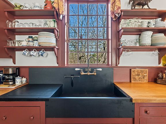 1762 Antique high-posted Cape with sweeping meadows to the shores of the Sheepscot River and Wiscasset Harbor. Stunning restoration! 6 original fireplaces, hand painted murals and custom stenciling, raised paneling, 4 bedrooms, 2.5 baths and attached 2 car garage in the barn. Traditional tavern room with beehive oven/fireplace , keeping room and exquisite reproduction kitchen with antique wood burning stove. Exquisite condition. W. Andrews (partner of Frederick Law Olmsted) designed grounds. Private yet walking distance to village.