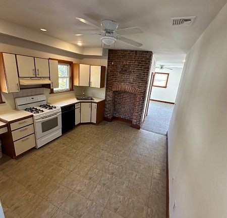Spacious bi-level 3 bed, 2 bath apartment in Montclair with private parking. Great features like vaulted ceilings with wood beams, large kitchen w/ exposed brick fireplace (non functioning) and back entrance, laundry in-unit, renovated bathrooms, and original wood trim and character.