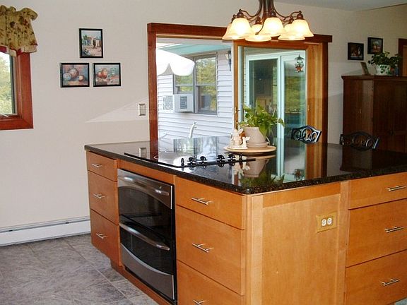 Private, yet accessible! Beautiful Contemporary home on 11 acres in a park-like setting with in-home business space. This sunny and open home features a stunning Chef's kitchen with top of the line fixtures, two sinks, large island with storage, Maple cabinets, gleaming Granite countertops, Stainless Steel appliances including a double dishwasher, fridge, compactor and double oven! Tiled mudroom and half bath. Spacious dining room with hardwood floors and gas wood stove. The sunlit family room features large windows, cathedral ceiling with tongue, exposed beams and grove pine and a cozy gas fireplace. Expansive deck perfect for BBQ's or for relaxing and enjoying the wildlife. This three bedroom home includes a master bedroom with master bath. Heated two car garage plus workshop space. The in-home business has its own heat and water perfect for salon, studio, office or daycare. It could also be converted to a first floor master bedroom, playroom, or media room. The lot is tree-lined with the perfect amount open space and woods for privacy. Easy drive to Burlington!
