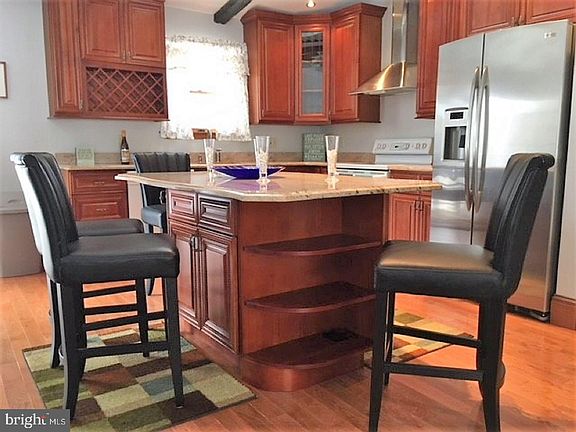 - Kitchen Island, Exposed Beams, Open Floorplan, Bar, Wet/Dry Bar, Upgraded Countertops, Stall Shower, Wine Storage
