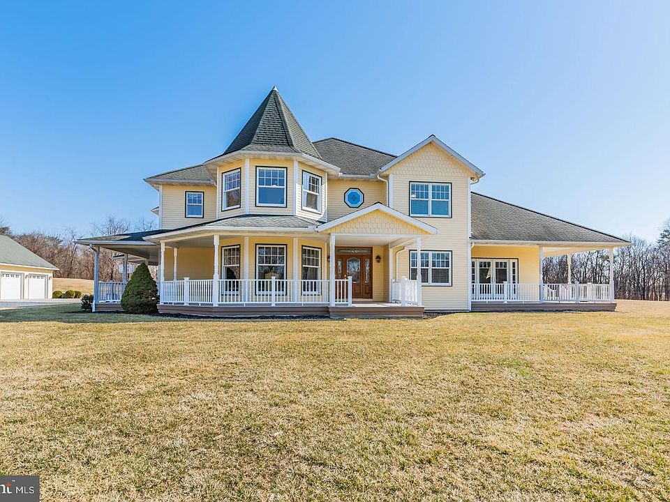 PLEASE DO NOT DRIVE UP DRIVEWAY WITHOUT A SCHEDULED SHOWING. Welcome to the serene setting of this Victorian style home situated on just under 8 acres in CV Schools. The tree-lined driveway and meadow like front yard, set the stage for this custom built meticulous home. The outdoor space is enhanced by an inground concrete salt water pool and spa w/ many new features, complimented by a pool house, equipped w/ a kitchenette. There is a 1200sq. ft. 3-car detached garage w/ room for a car lift, plumbed for a bathroom and above floored storage. The driveway in front between the 2 garages is heated! There is also a 3-car attached heated oversized garage, w/ epoxy floor finish, radiant heated floors and floor drains. The home has custom features that have been meticulously thought out by the current owners. The grand circular staircase in the foyer, welcomes you to this home, w/ a home office, featuring hardwood flooring and natural light. The kitchen and breakfast area have soaring windows, custom cabinetry, island w/ Viking 6 burner gas range and retractable exhaust fan, large walk-in pantry and subzero refrigerator. Great room w/ 20ft. (+) ceilings, a wood burning FP and numerous windows. 1st floor primary BR has 2 walk-in closets, tray ceiling w/ enhanced lighting and french doors leading to the wrap around porch. Conveniently there is a mud room/laundry room off of the primary bathroom, as well as a 2nd laundry area on the 2nd floor, complete with a sink. The 3 BR's on the 2nd floor have walk-in closets, 2 have adorable window seats and plenty of natural light! There is a bonus room that has many uses, office, workout room or another bedroom. The basement is beautifully finished w/ everything you will need! A media/theatre room, a home gym, full bath, game room w/ gas fireplace, safe room and workshop. All floors on the main level of this home are heated w/ separate controls, there are 2 propane boilers, 3 zones of AC, 1 on each floor, a 50 yr roof, complete water filtration system and a covered back porch overlooking the pool. There are 2 parcels, deeded separately, included with this sales price, 7.07 acres and .91 of an acre. Just an incredible property with so much privacy, but yet great for entertaining!
