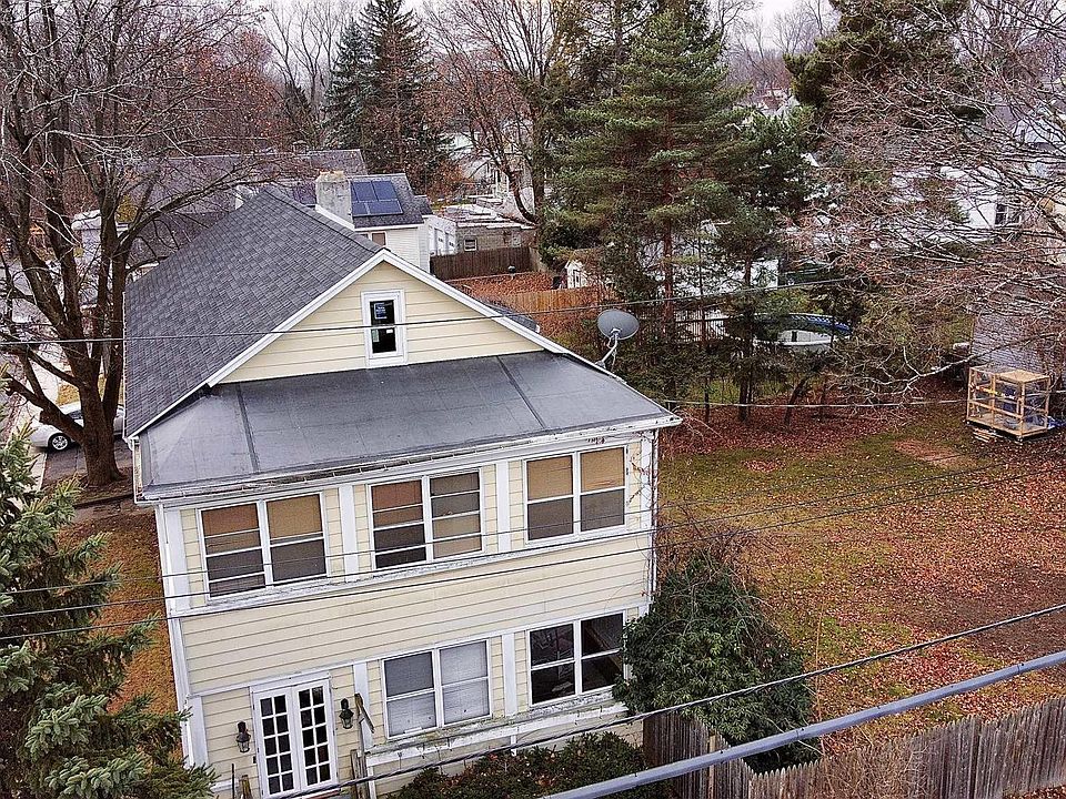 HUGE two family on a quiet tree lined residential neighborhood, situated on a DOUBLE lot w/2 car garage & driveway. Hardwood floors, upstairs hot water tank (2015), 1st floor kitchen updated (was owners unit), deck off 1st floor unit, some newer appliances and roof (2015) . Both units have front enclosed porches & back mud rooms w/ washer & dryer hookups, separate utilities. Great owner occupied situation. Total taxes $$6,100.