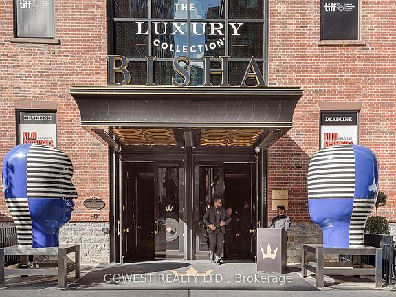 Live at the prestigious Bisha Hotel and Residences! This stylish 1-bedroom, 450 sqft unit w/Balcony, features 9ft ceilings, natural stone countertops and backsplash, built-in Appliances, and g floor-to-ceiling windows offering breathtaking. Enjoy exclusive access to five-star hotel amenities including a rooftop infinity pool, rooftop restaurant and bar, 24-hour concierge and security, dry cleaning services, and in-room dining available from the Bisha Hotel. Located in the heart of the Entertainment District, you're just steps from the Financial District, Rogers Centre, CN Tower, TIFF Lightbox, King Wests top restaurants, theatres, and music venues. Perfect for professionals seeking the ultimate urban lifestyle surrounded by world-class conveniences. Gym membership not included. Experience luxury living in one of Toronto's most iconic addresses. Cool Restaurant Bar available for use to residents on the 44th floor of the Hotel w/breathtaking views of Lake Ontario, the CN Tower and Toronto Islands! Only Hydro is Extra.