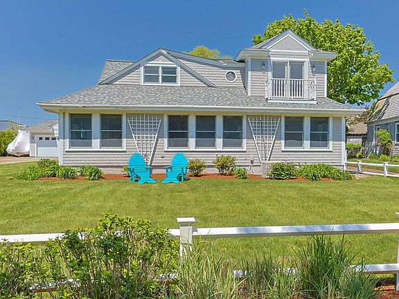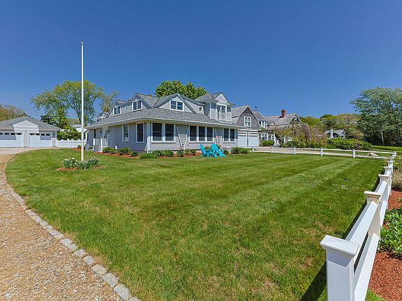 Ideally positioned between Oyster Harbors and the Wianno Club, this beautifully maintained coastal property offers picturesque views of West Bay that enhance its serene setting and offer a constant reminder of the sea's proximity. Blending privacy, charm, and convenience, this is a place where summer memories are made, and year-round living is equally inviting.The main residence features three bedrooms, including two guest rooms on the first floor and a spacious, private primary suite upstairs with a sunlit balcony overlooking the bay. At the heart of the home is a welcoming living room anchored by a fireplace and surrounded by windows that fill the space with natural light. The open-concept layout flows effortlessly into a renovated chef's kitchen with a large center island, perfect for casual dining or entertaining. Step outside to an expansive deck and stone patio--ideal for al fresco meals, afternoon lounging, and evenings gathered with family and friends. A separate guest house enhances the property's flexibility, providing generous accommodations with a bedroom, bonus room, two full bathrooms, and bright, open living space. Whether hosting extended family, weekend visitors, or a home office retreat, the guest house offers comfort and independence for all. Recent improvements include a new roof on all structures (2023), a fully renovated kitchen (2021), and several system upgrades throughout. Located in one of Cape Cod's most desirable seaside communities, this special property is just minutes to fine shops, dining, and beaches that make Osterville a cherished destination. Information contained herein is believed to be accurate but should be independently verified by prospective buyers.