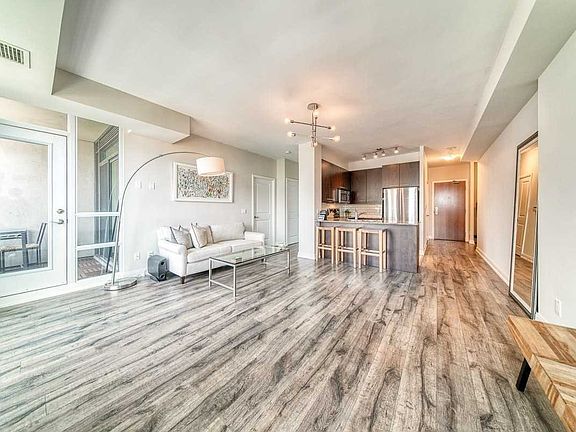 Rare Unit! Perfect Location In Trendy Yonge And Eg Neighborhood. Practical Layout With Huge Open Concept Living Space Comes With Modern Kitchen (Breakfast Bar And Separate Dining Area), Floor To Ceiling Windows And W/O Balcony From Living Space. Huge Master Bedroom With W/I Closet, Modern Washroom And Useful Den. New Lrt Station Is Coming Soon, Grocery Stores, Shops, Restaurants, And Much More! One Parking And One Locker Included. Total: 766 Sq/Ft + Balcony