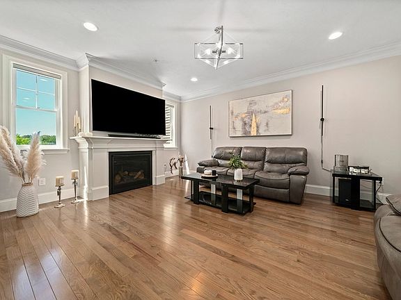 Welcome to this stunning 3-level modern townhome nestled in the peaceful Montage at Brookview. Step into the inviting foyer and embrace the contemporary elegance. The main level offers a spacious living room with lg windows, a gas FP, and HW floors throughout. The open concept seamlessly connects the living space to a generously sized dining room, where a walk-out patio extends indoors to the outdoors. The modern kitchen is equipped with SS appliances and a breakfast island. A half-bath on this level adds to convenience. The 2nd level offers two generously-sized BDs, a master ensuite, walk-in closets, a laundry room, and a sizable hallway/sitting area/home office. The finished basement features a floor-to-ceiling slider leading to the patio. This versatile space can be a guest suite, game room, or an office. Other features include high ceilings, modern light fixtures, and ample storage. Located near Rt. 495, close to schools, shopping, restaurants, and Franklin State Park.