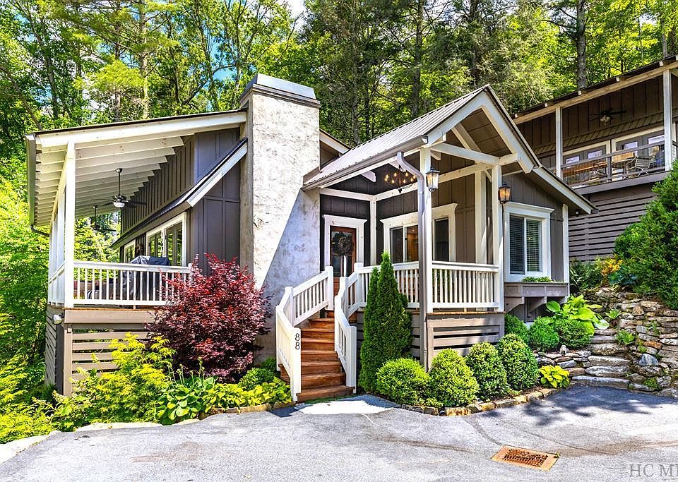 Modern rustic updated cottage sits on a hill with views of Whiteside Mountain from the expansive covered back porch and entrance. Walking distance to the Village Green and all shopping, Bucks Coffee Shop and many restaurants. Wide plank wood floors, exposed beams, custom cabinets and marble counters. Both bathrooms have been beautifully updated. The perfect vacation rental or weekend getaway from the city. Welcome home!