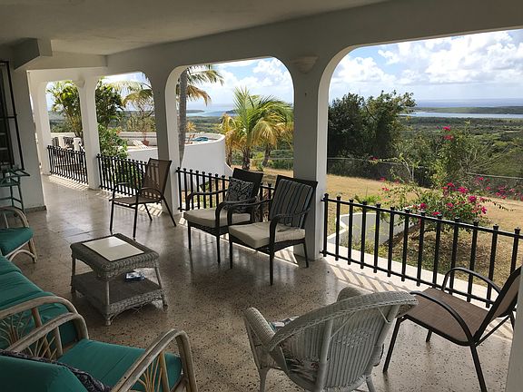 Sip cocktails on your porch, take in the Caribbean trade winds, and enjoy the sunset over the Caribbean Sea. This multi-unit property has views of both sides of Vieques, and is located in a very quiet and secluded hilltop. The top floor has a full kitchen, dining room/living room, two porches, two full baths, including a master suite and office. On the lower floor, there is an apartment ideal for renting out short or long term, which has one bedroom, a full bath, kitchen, dining/living area and closed in porch. Another guestroom is located on the lower floor, with its own full bath. The property has a pool, ideal for sunning and taking in the Caribbean views to the south. This has been a family compound for over 40 years, and is now available to be enjoyed by your's!