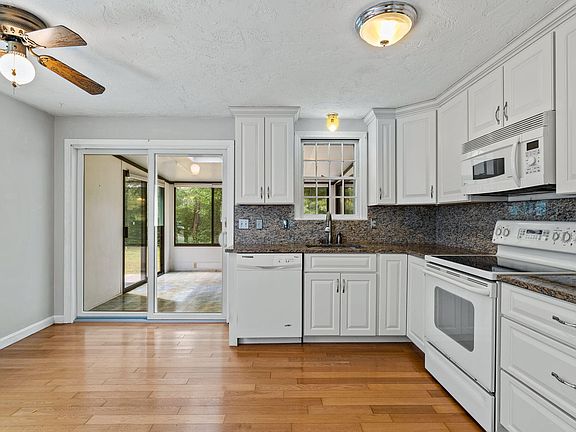 So much to love about this sweet 3 bed 2 bath ranch. Walk up the landscaped front yard into the front door to find a living room with hardwood flooring, fireplace and mini-split with a/c & heat. Straight ahead is the kitchen with granite counters and slider out to the sunroom. Head back in and down the hall with shared full bath and 2 bedrooms. At the end of the hall is the primary bedroom with private bath. The roof is less than 6 years old and the boiler is only 2 years old. A good sized backyard has a shed for storage and the detached garage is an added bonus. Don't miss your chance for this one!