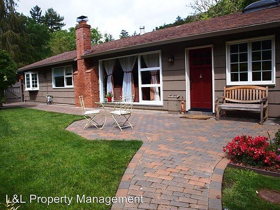 Updated Home with Hardwood Floors and Gorgeous Fenced Yard - This lovely 3 bedroom, 2 bath, ranch-style home is set amidst beautiful front, side and back gardens, outdoor grill and dining area with wood-burning oven! The house features a living room with a stone fireplace, hardwood floors, adjacent separate dining room and bonus/office. The kitchen has granite counters, stainless steel appliances, a granite breakfast bar and ceramic tile floor. Just off the kitchen is a mudroom with a generous pantry and closet with stacking washer/dryer. Two bedrooms share a hall bath with pedestal sink and brightly colored tiled shower with glass enclosure. The private master suite has a nice bay window, built-in bookshelves and niches, large walk-in closet, an updated bath with dual sinks and glass enclosed shower over tub. Step right out of the master suite to the covered deck and enjoy the sunshine and lovely garden. Located in a quiet tree-filled neighborhood. This property also includes ample parking. No smoking. Small pet okay with an increased deposit. Available Immediately. Call for appointment L & L Property Management (415) 339-2000 or agent Sam Mailliard (415) 302-2621. (RLNE2488242)