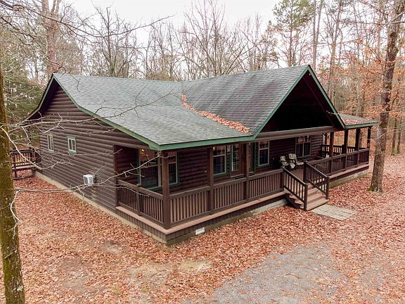 Charming rustic home near Greers Ferry Lake!?This beautiful 2 bed, 2 bath home boasts 1600 sq ft of open living space and sits on a .99-acre lot at the end of a cul-de-sac. Enjoy the views from either of the two large porches on the property. The home features a lighted stained glass window in the front, a 10' x 16' insulated storage shed with a loft, underground utilities, and a 24' detached carport. The kitchen is equipped with a large island, while the bathrooms have marble counters. Refrigerator, washer, and dryer all convey! To ensure safety, the home and carport are equipped with hurricane hangars to secure the roof, and there is blown insulation throughout. Handicap accessible doors make this home a comfortable option for everyone. Be sure to click the two video links to see the 3D tour and aerial drone footage. Agents, see remarks and docs for more info.