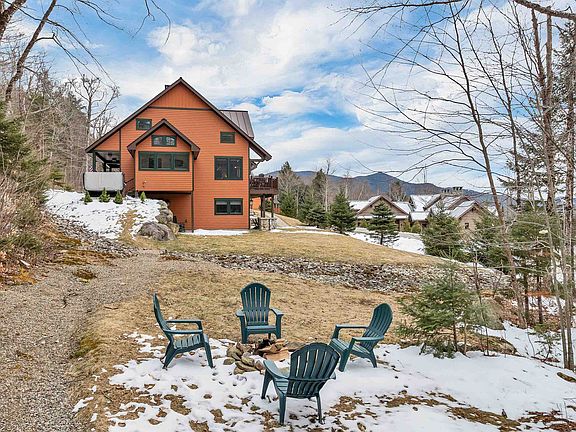 MAGNIFICENT CUSTOM ADIRONDACK at CASCADE RIDGE. Privately situated in a cul-de-sac and nestled up to the White Mountain National Forest. Amazing VIEWS. Spacious, light-filled rooms with the warmth of wood birch floors and cabinetry. Huge windows in the great room bring views of sunsets and the ski slopes. Three bedrooms plus a bunkroom on three levels. The chef's kitchen is beautifully appointed with granite counters, high-end appliances, custom cabinets, huge island and a separate pantry room - with a view! The delightful 4-season porch located off the living room allows for a quiet retreat while enjoying a view of the adjacent garden and private hot-tub area. The upper level features a loft/ office area overlooking the living room below. The upstairs master suite is privately tucked away with a spacious bath with new walk-in shower, double vanity and two huge walk-in closets. The lower level comprises two spacious bedrooms along with a full bath and game-room/ family room with a woodstove hook-up. There's also a "secret" bunkroom making this a wonderful family/guest area. You can access the trail network directly from this lower level. The whole-house AC and Humidity is managed by an intelligent air exchange system. The in-floor radiant heating is extremely efficient. Electric window shades, extra car lift in the garage and the list goes on.... See Video below.