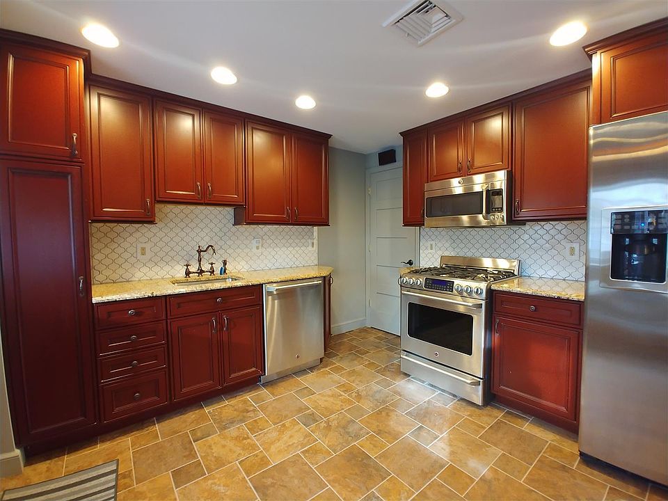 2BR, 1BA renovated townhouse in Cranford. Blocks away from downtown, restaurants and public transportation. Hardwood floors, Central AC, baseboard heat, big EIK with SS appliances and granite countertops. Good size bedrooms. Attic and basement for extra storage. Fenced in patio, storage shed and 2 parking spaces on private back driveway. Washer & Dryer provided.$2,000 a month, tenant pays commission. Lawn & Snow removal included.Appointments or questions call/text Lorena 908-370-1686