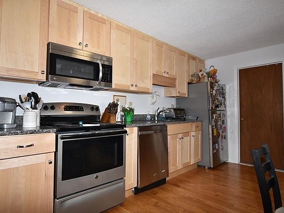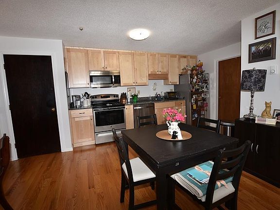 Gated garage parking comes with this beautiful, spacious and dazzling 1 bedroom unit. You'll love the open layout. You'll appreciate the convenience of the garage parking under the building, no snow to deal with. There is a totally remodeled large, open kitchen with all new Shaker style maple cabinetry, granite counter tops and SS appliances for dishwasher, stove, and microwave, (fridge is white). Gleaming hardwood floors in living and bedroom areas. Plenty of closets in this convenient 1st floor unit, including double closets in bedroom. Walk to downtown and vibrant Moody St with all its restaurants and shopping plus great transportation with access to trains and buses. Convenient coin-op laundry in garage. See it, love it!