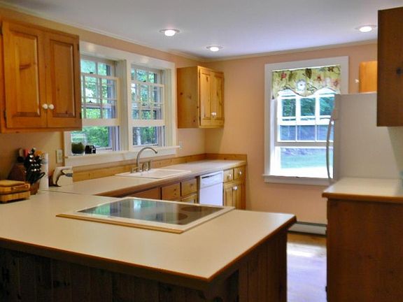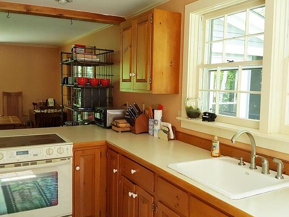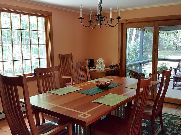 This reproduction antique cape is has almost three acres of land on a quiet country road in picturesque Andover. It is pristine inside and out. The spacious front entry enjoys wide pine floors which are continued through the open living area, eat-in kitchen and spacious dining room. A first floor master bedroom has a private bath, and spacious closet. Also access the private rear yard from the bedroom with your morning coffee. The main level also has a powder room, a handsome fireplace, a VT Castings wood stove, and a wonderful screened in porch just off the dining room. The second level has two spacious, bright bedrooms and a full bath. The exterior is filled with lush gardens, a manicured lawn and a large two bay garage with storage above. Only 6.5 miles to shopping, skiing and dining in Ludlow VT or 10 miles to the Chester Village, as well as a very short drive to Weston!