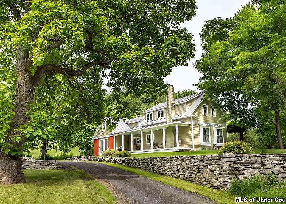 First time on the market in four decades, a hidden gem in the Historic Hamlet of Kripplebush. A spectacular 40 acre haven for those seeking vistas with rolling meadows, woods, spectacular seasonal Shawangunk mountain views, long stream frontage, established stone walled perennial gardens, and a stunning pond. This lovely, rural 2 story home is an updated take on the classic country farmhouse, with modern conveniences and the appealing charm of simpler times. Its next owner may enjoy the home as it is, as they envision it becoming, or, reside there while creating their personal country dream home on one of the elevated private plateaus with stunning year round mountain views that the property features. In that instance one could use the existing home for guests, a caretaker, or if one prefers, offer it on a short term rental site such as onefinestay.com for visitors to explore this sought after area. This home has been lovingly updated by one of the area's most respected architectural designers, with a true understanding of the Hudson Valley aesthetic. From the charming rocking chair porch, to the handcrafted column supported rear pergola, a love of the outdoors clearly was the inspiration from every vantage point. The interior features warm wood floors, a spacious open-plan kitchen with built-in window seating, and a truly workable and comfortable floor plan which invites you to spend wonderful times in this home. The land is truly a major asset here as well. It features some of the most spectacular meadows, stone walls, and tranquil walking opportunities in the entire region. With the home set well back off a secondary road, there are few distractions for those seeking solitude. Yet, it is within 5 mins. of the nearby conveniences in the Stone Ridge and High Falls commercial hamlets, 15 mins. of Minnewaska State Park, 20 mins. of Kingston, 25 mins. of Woodstock, and 35 mins. of Belleayre Mt. Ski Center. This offering shares a location with some of the finest estate properties in Marbletown. The best of all worlds awaits here.