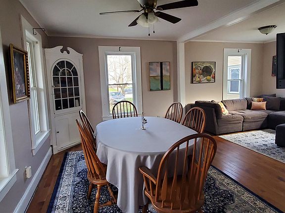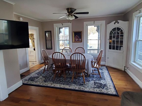 Tucked away off Main Street on a quiet little street you'll find this lovely Victorian home! Original features from years past are still present such as a built-in corner cabinet in the dining room and an oversized glass door pantry in the kitchen. The open concept living/dining area has beautiful hardwood floors and lots of natural light. The kitchen is very user friendly and has wonderful tile flooring. Upstairs you'll find 2 bedrooms with nicely sized closets, and a 3/4 bath with tiled shower and skylight. There's also a primary bedroom with built in dressers and a full bath complete with vintage claw foot tub and separate tiled shower. Spend your summer days relaxing on your front porch instead of mowing as this home is as easy maintenance as they come!