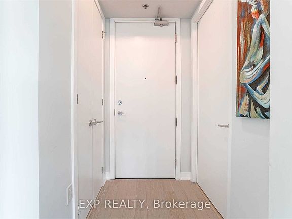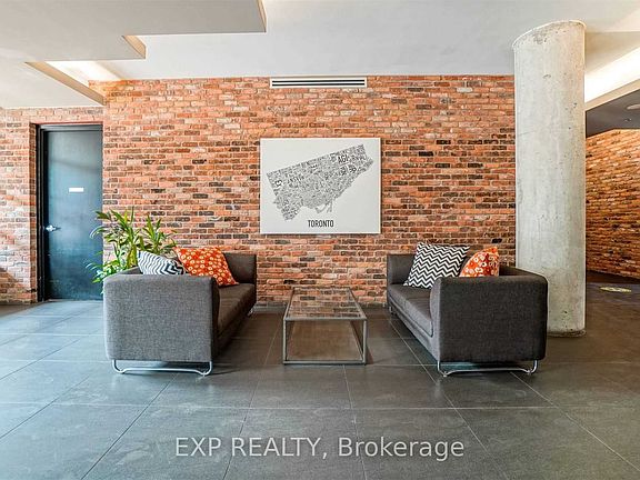 Welcome To This Gorgeous Corner Loft In Leslieville, Offering A Bright Open Concept Layout, Exposed Brick Accent Wall, Modern Kitchen With S/S Appliances, 9 Ft Ceilings Feat W/O To East Facing Balcony. Hardwood Floors Throughout, Large Bedroom With Murphy Bed And Sliding Glass Doors Allow For Flexible Space. Large Closet With Organizers, Ensuite Laundry. Amenities: Gym, Party Rm, Theatre Rm, Guest Suites, Bbq. Steps To Ttc, Grocery Stores & Shops!