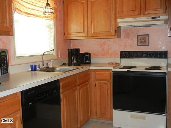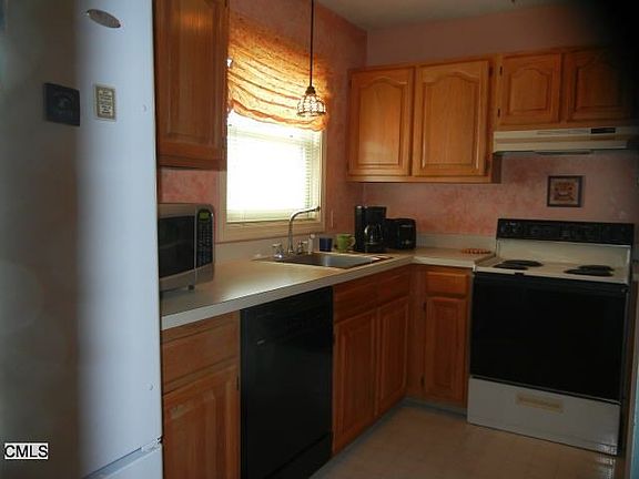 Pleasant 2BR, 1.1 bath twnhse. LR/DR comb, sliders to deck. Gally kitchen w/newer appliances. Skylit staircase to BRs & laundry. Att garage. Private end unit overlooks Bradley Pond.