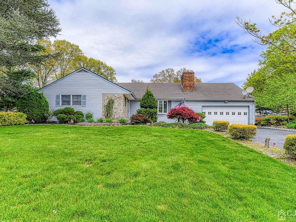 Elegant & bright updated custom ranch located in the quiet neighborhood in the most desirable Farrington Lake community. This home features a spacious, open floor plan with gleaming hardwood floors. The banquet-sized dining room boasts a wood-burning fireplace & French doors which lead to a designer's delight newer updated gourmet kitchen with high-end S/S appliances, granite countertops, a breakfast bar plus casual dining area. The kitchen opens to the huge family room with a cathedral ceiling, half moon bay window, recessed lights & 4 skylights. The master bedroom features a walk-in closet plus a 2nd closet along with a newly updated master bath plus 2 additional good-sized bedrooms. The finished basement has an ample room that can be used as a recreation room, a home office, laundry/utility room & storage space. A glass sliding door from the family room leads to the beautifully landscaped, fenced-in backyard with a deck, patio & an in-ground heated pool. A bar/entertainment room that is accessible from both the outside & inside completes this entertainer's delight. Newer pool heater (approx. 2 years old). Easy access to transportation, NYC Bus, major highways, shopping, dining, & recreation. Warnsdorfer Elementary School & East Brunswick Award-Winning Blue Ribbon Schools!