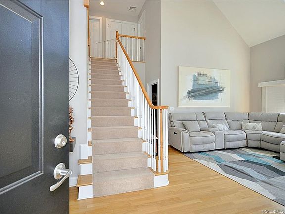 This MUST SEE spacious 3 bedroom 2.5 bathroom duplex is an original Olive Model Home. Although it was built in 2014, it has only been lived in for one year and the builder put in a brand new kitchen prior to the owners moving in. This brand new kitchen boasts quartz counter tops, white cabinets, a center island and modern stainless steal appliances. The hard wood floors, cathedral ceilings, first floor master and two car garage on the main level, truly make this home exceptional! The private flagstone patio, gas fireplace, many windows and it's proximity to the gorgeous amenities, give you the RESORT lifestyle you won't want to pass up! Copper Square offers a beautiful clubhouse complete with a fitness center, outdoor heated pool, movie theater, fireplace lounges and much more along with an excellent location with easy access to I-84/684/Rte 7, shopping and restaurants. This one won't last! Come see for yourself and welcome home!