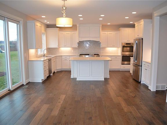 The Lincoln provides an updated, open floor plan with a functional great room. The exterior has stone accents for an old world feel. The 2-story foyer opens to a formal dining room and 1st floor library. The wonderful kitchen has a large center island, 48" chef grade GE Monogram rangetop and walk-in pantry. A butler's pantry is located between the kitchen and dining room. Lovely master suite with his & hers walk-in closets. Basement equipped with egress windows for future finishing. Homesite backs to town lands for forever views!