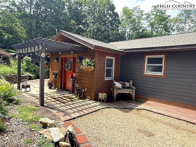 With a total of 2074 sq. ft. this beautifully updated and meticulously maintained cottage is located on the sunny south facing side of Beech Mountain just minutes from the Ski Beech, the Town of Beech Mountain, and the charming village of Banner Elk. The main entrance has a level entry. A lower drive offers level entry to all of the additional finished space downstairs. All of this contributes to this home being easy to live in! Bright and welcoming, the entry has a vaulted tongue and groove ceiling and slate tile that leads you to an open floor plan that features a large picture window with a custom awning, flooding the space with natural light. The remodeled kitchen includes stainless steel appliances, beautiful modern cabinetry, and a smart, functional layout with pull outs in the many cabinets. Original oak hardwood floors run throughout the main level, which also offers two bedrooms and a full bath. The lower level, another 1000+ sq ft not included in the official square footage due to height requirements, adds incredible flexibility. It includes a bonus room perfect for an office or guest space, a second full bath, a cozy den, a workout area, a laundry and mechanical room, and a full wall of closets for abundant storage. Recent updates in 2022 include a new roof, central AC, fresh paint inside and out, new decking, and power run to a charming detached barn style building ideal as a shop, playhouse, or outdoor storage! Outdoor living is just as impressive. Enjoy the wraparound decking, backyard fire pit, gas grill, beautiful perennial rock gardens, and a walkable, landscaped yard perfect for entertaining or relaxing in nature. High speed internet is available through Spectrum or Skyline. There is a shared well between 3 homes which has a separate meter. The home has a propane furnace with air conditioning added on 2022. The basement bath was installed by a licensed plumber but was not permitted. This is a rare opportunity to own a move in ready mountain retreat in one of the High Country’s most desirable locations. This is truly a perfect Mountain Cottage that is in impeccable condition. A must see and will not last long!