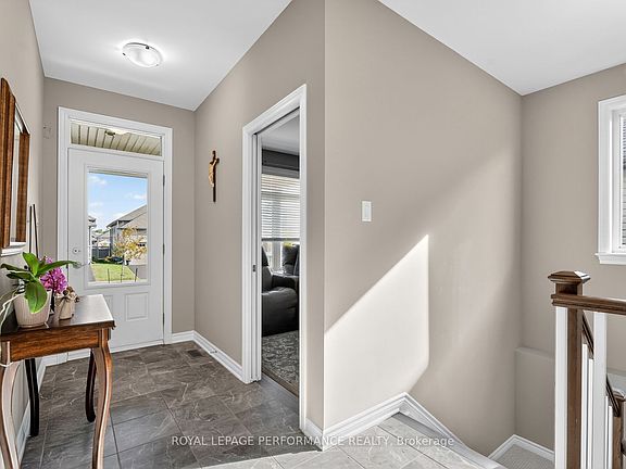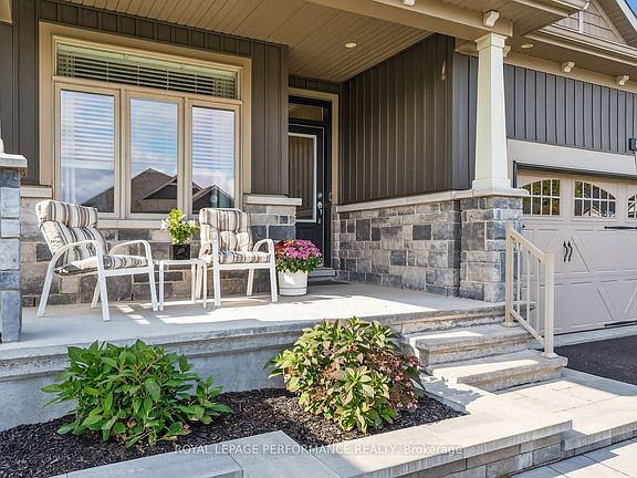 Welcome to 88 des Rails Street, a stunning 2-bedroom + den EQ-built craftsman-style bungalow with a 3rd bedroom in the fully finished basement, located in the sought-after Clarence Crossing community in Rockland. Nestled near the banks of the Ottawa River, this neighbourhood offers scenic forested walking paths while keeping you close to everyday conveniences, golf, hockey, soccer fields, and even a local brewery. Step inside and discover 1,640 sq. ft. of stylish main floor living with vaulted ceilings, rich hardwood floors, and a cozy gas fireplace anchoring the open-concept design. The chef's kitchen features two-tone cabinetry, granite countertops with a breakfast bar, undercabinet lighting, stainless steel appliances, a walk-in pantry, and a handy alcove with additional cabinetry, perfect for storage or a coffee bar. The main floor offers a thoughtful layout with a primary suite featuring a walk-in closet and a 3-piece ensuite with a stand-up shower. A second bedroom also includes a walk-in closet, while a den at the front of the home makes an ideal office, TV room or reading nook. Another full bathroom, main-floor laundry, and a welcoming covered front porch add to the functionality. Downstairs, enjoy an additional 1,180 sq. ft. of finished space with a large rec room, a third bedroom, a 4-piece bathroom, and two storage rooms. Set on a premium wide lot, the fully fenced backyard is perfect for relaxing, complete with interlock patio, pergola, and privacy. The extra-wide oversized two-car garage with inside entry provides ample space for vehicles and gear. Peace of mind comes with practical upgrades, including a Generlink 30-amp transfer switch for generator hook-up and an Eaton whole-home surge protector. Built in 2017, this move-in ready home blends modern comfort with timeless style in one of Rockland's most desirable riverfront communities.