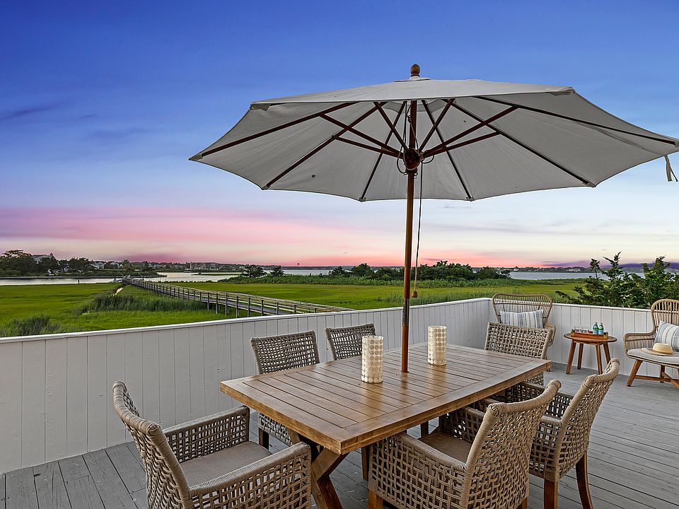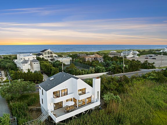Look no further for the perfect stay that offers a truly amazing location, This cool and stylish beach house with new renovations is located on Dune Rd, Village of Westhampton Beach. The 1.2-acre property is located right on the bay with a deep water dock and private ocean access to boot.Standout amenities include expansive bay views throughout the home, including from all four bedrooms, an open living room, and a chef's kitchen. Plenty of outdoor living space on the main deck as well as a private deck for each bedroom. Two en-suite primary bedrooms - one on each floor. Plus two additional guest bedrooms and a bathroom on the second floor. A deep water dock can accommodate a boat and jet skis, fishing, or simply enjoying the views or perhaps taking your Zoom meeting with high-speed wifi on the outdoor dining table looking at the bay views. Conveniently located across from Rogers Beach and 1 mile to the Village shops and eateries,