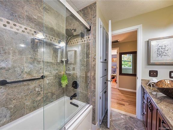 Welcome home to this absolutely striking Sasportas built, immaculate, well cared for, move in condition colonial in the charming Farmstead Subdivision of Windsor. Upper level offers a master with walk in closet and private bath, 2 additional bedrooms sharing a full bath. Main level has a living room the entire length of the house, dining room, eat- in kitchen with granite countertop and a peninsula with storage, half bath/laundry room, family room with fireplace, vaulted, beamed ceiling and access through sliders to a recently updated deck overlooking a privately fenced backyard. Home has central air and central vacuum a 529 sqft. attached garage, and electric upgrade to 200 Watt 60 Amp. Beautiful walkway and custom bluestone steps a frontage of approximately 200ft of manicured lawn and beautiful gardens. Perfectly located, easy access to shopping, restaurants, trails, parks, fitness clubs, and minutes from I-91.