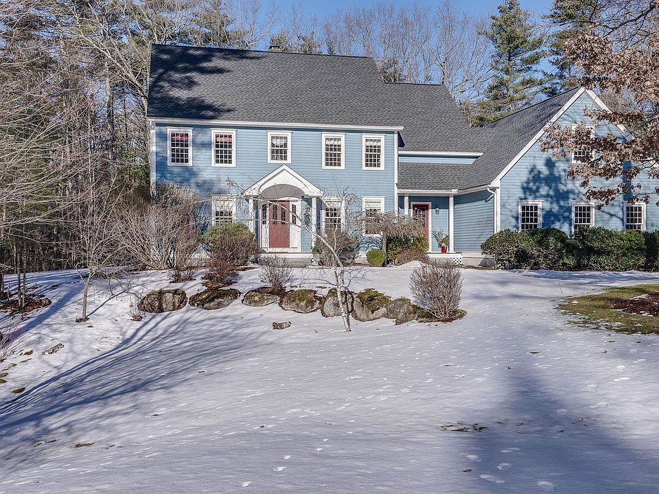 Fantastic location. Privately sited on about 2 acres at a cul-de-sac, this beautiful Colonial in sought after Moors Purchase neighborhood, original owners of this Cooke custom home with gorgeous updates through the years in Bedford’s Peter Woodbury Elementary school district. Please check out Video virtual tour, and 3-D floorpans. 2 Story foyer entrance leads to Open Concept living with expanded Light filled “Chef’s Dream Kitchen” with about 150 sf vaulted addition including stunning natural cherry cabinets, 7 burner gas stove top w/grill, warming drawer, double ovens, 2 dishwashers, extra drawer fridge, wine fridge, extra large island with 2nd sink and sky lights. Kitchen is open to large eat-in area and see through double sided gas fireplace to family area. Living and dining rooms on same level along with an ample mudroom, 1/2 bath, and entrance to 2nd floor bonus room which is the only carpeted area in home with the rest having wood floors or tiled bathrooms. Large deck and attached 2 seasoned porch. Some other updates include a newer roof, heat pump, propane, central air, water pump, and more. Primary bedroom with trey ceiling, newer spa bathroom, 2 walk-in closets. Also on 2nd level are 3 large bedrooms and sizable bathroom. Other large room used as game room/guest. Garage has extra space and walk down second entrance to garage unfinished space. Tastefully attended through the years -- a spectacular Bedford home. Open House Saturday and Sunday Jan. 20-21st at 12p-2p