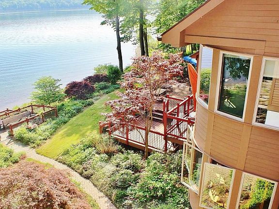 This excluded property on Owasco Lake has 380 feet of level lake frontage with stunning views from each room in the home. The wooded lot gives a sense of tranquility with a stream running through the South perimeter of the property. The home is just a short drive to the Finger Lakes Music Festival, Auburn, Skaneateles, Ithaca, and the Finger Lakes Wine Trail. The main home has over 3400 sq. ft along with a guest loft above the 2 car garage, custom built Bartolotta kitchen and woodwork, multiple decks for entertaining, radiant heat, AC, beautiful hardwoods throughout, and many custom features that make this home one of a kind and a must see.