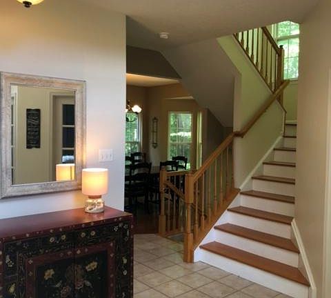 WELCOME HOME! Are you looking for a beautiful colonial nested in a private setting surrounding by tress & nature? This unique home offers an abundance of living space with a total of estimated 3,752 square feet of finished living space. The dramatic 2 story foyer welcomes you as you flow into the living room and dining room areas. The gourmet kitchen is the heart of this home with it's open floor plan which includes the spacious family room with cozy pellet stove and the large morning room with kitchen table space. the French doors provide access to the Trex deck with a large hot tub ( included) where you can relax and enjoy the private backyard. The upper level of this home hosts an amazing primary bedroom suite with luxury bathroom & large closet for plenty of storage. The additional 3 bedrooms are a generous size and share a recently renovated full bathroom located off the main hallway. The finished lower level is a great place to entertain featuring gleaming hardwood floors, awesome Bar area fully equipped with sink, mini frig, dishwasher, large refrigerator and wall mounted TV ( included). In addition the finished lower level Media Room features an entertainment center & built-in speakers & receiver system ( included) , private office & full bathroom. There is a exit door to walkout level to the fenced back yard . This wooded lot has partial forest retention area ( see plat).