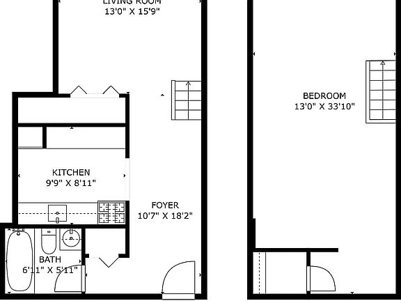 Spacious 1,000 sq ft duplex offering the flexibility to create a second bedroom.