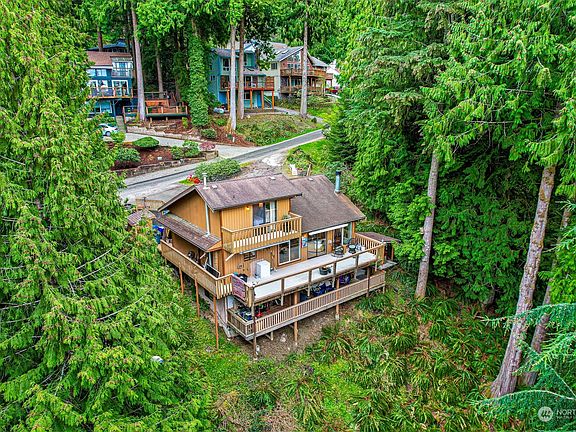 Nestled in a wind-protected cove on the ridge above Lake Whatcom, this haven of tranquility can be your tree top retreat! With the added value of a studio apartment with separate access downstairs, decks on all three levels, and forest and lake views, this is not a home you want to miss. Sit in the hot tub to watch snow wrap the forest in a blanket of white. Enjoy a wood-burning stove on long winter evenings or sleep under the stars on the deck on summer nights. Rent out the lower level for cash flow or use it as a rec room while enjoying the activities of Sudden Valley: marina, beach access, golf and clubhouse, fitness center, swimming pool, parks and trails, and more. High speed internet allows a home office surrounded by natural beauty.