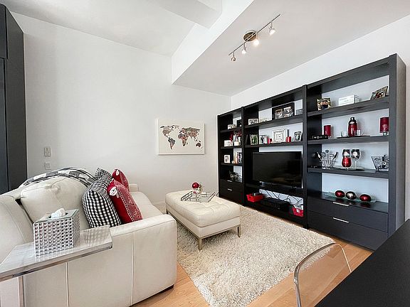 The luxurious bathroom features Italian lava stone, overhead rain shower, and Kohler soaking tub. The condominium’s amenities include a top of the line fitness center, resident’s lounge, and the massive roof deck that provides panoramic views of the city and river. The building also offers a 24-hour doorman, concierge, cold storage, and dry cleaning. Laundry room available on the same floor as the apartment.