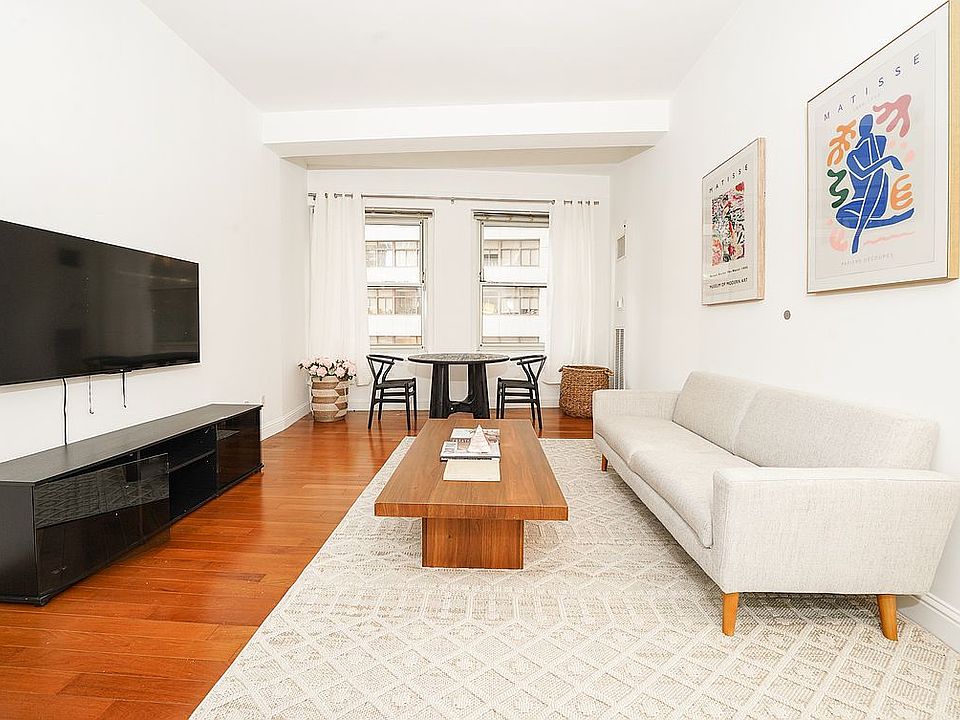 This bright, west-facing junior 1-bedroom features a kitchen with breakfast bar which flows seamlessly into the main living space, framed by oversized windows that bathe the home in natural light. Two large closets—including one walk-in—offer generous storage.
