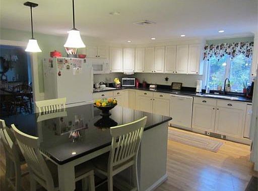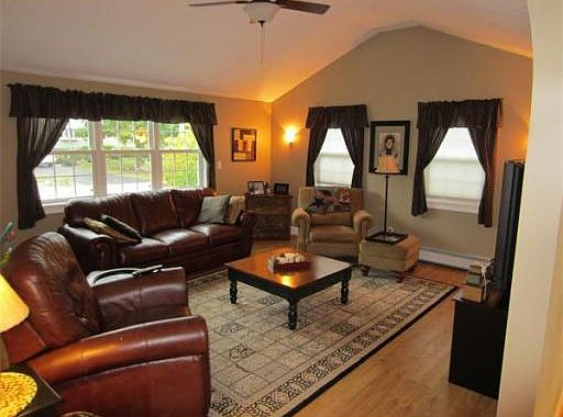 Expanded Raised Ranch with versatile floor plan for large family or in-law setup on large corner lot. The ultimate setting for outdoor entertainment! Expansive updated kitchen w/ granite counters, beautiful oak floors, & granite trimmed fireplace. Well appointed lower level includes great room w/ wood burning stove, large bedroom & 3/4 bath. Awesome three season room overlooking lovely landscaped grounds w/ irrigation, expansive fencing and private 16'x32' in ground pool & cabana. State of the art 3 zone Buderus heating system and central a/c. Additional Back yard area for storage, garage or recreation. four bedroom approved septic system.