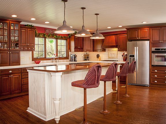 Have you ever wanted to live in an historic farmhouse that has been beautifully updated, well the wait is over. Upon entry there is a sense of history with a reclaimed wood feature wall and custom built-ins in the living room. The wood stove is the perfect spot to curl up and warm your toes on chillier nights and features a stacked stone surround with a mantle for displaying family photos. Matching styles and original hardwood floors flow seamlessly into the spacious family room with custom built-in shelves and storage. The kitchen is taken straight from the pages of a magazine and boasts warm wood cabinets with under cabinet lighting, tile backsplash, a gorgeous apron sink, stainless steel appliances, and pantry storage. A massive island is the focal point of the room with beautiful granite, pendant lighting and floor mounted stools. Dinner is easily served in the dining area with walls of windows/doors leading to the rear deck and patio. Basement access is just off the kitchen, and houses the laundry space and plenty of storage. For your convenience, the first floor also offers a full bathroom. Upstairs you will find the second full bath which is full of vintage charm with a claw foot tub and vanity. This bathroom is attached to the first of the three bedrooms which also features door access to a 23 X 21 roof deck! Just imagine swinging in a hammock and enjoying the breeze while enjoying the views. The main bedroom and third bedroom are just across the hall, and both offer ceiling fans with lighting. Stairs lead to the finished loft area which is perfect for a home office. A farmhouse would not be complete without a great piece of property and this one delivers a beautifully landscaped acre with views of the adjacent deed-restricted green acre property. Paved patios and walkways offer many scenic spots to relax and listen to the sounds of nature. A double bay storage shed can This farmhouse truly has it all, and it will be a place you love to live. 2022-04-29
