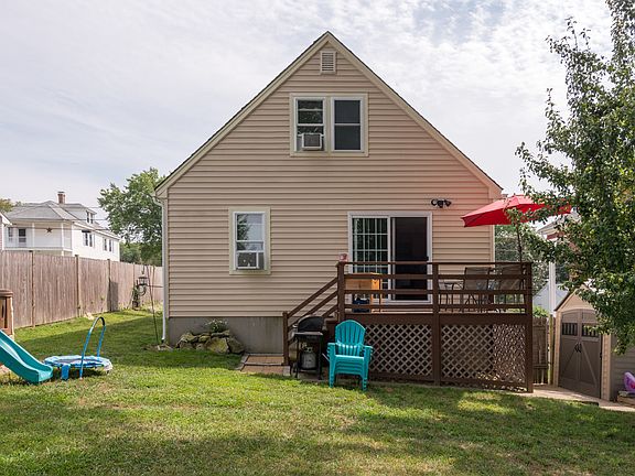 Awesome 3 bed cape with new kitchen and dining room. New appliances with double oven. Partially finished basement with storage room and family room. Good size living room with fireplace and exposed beams. New front steps and gutters. Brand new furnace and water heater. Roof is just 6 years old. Fenced in yard with plenty of space and outdoor shed, too! Yard is complete with a vegetable garden, pear tree, and berry bushes! Truly a move in ready gem! Subject to seller finding suitable housing.