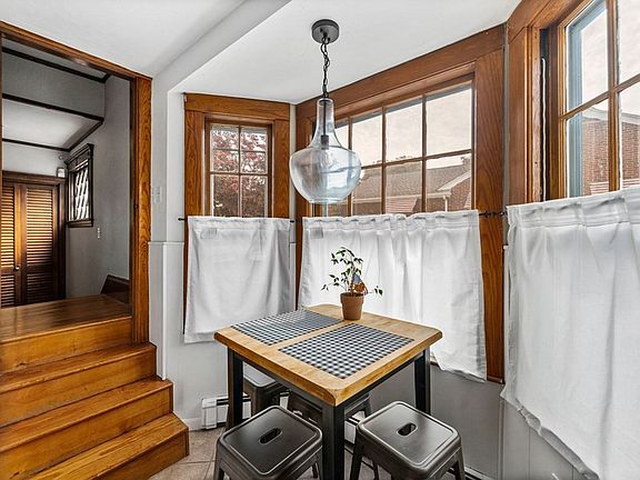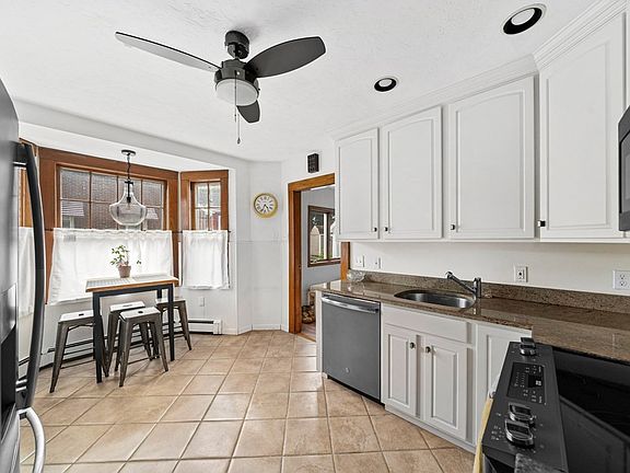 This 3 Bedroom Gambrel with a welcoming farmers porch has been beautifully updated yet still full of charm & character with original woodwork & gorgeous refinished hardwood floors throughout. Features include a refreshed kitchen with granite countertops and new stainless steel appliances, adjoining formal dining room with lighted built in hutch that open to a large living room & the foyer with split staircase on one side and a cozy family room with stone fireplace on the other side. There's 3 good size bedrooms on the 2nd floor and a 4th room that would be perfect for a home office or nursery. Other amenities include a 1st floor mudroom with LVT flooring, 2 mini split systems for a/c, a 2 car detached garage with 2nd story for storage, a walk up attic and full basement with more potential to finish. Located in a fantastic neighborhood that is literally just steps away from the Luce elementary school and also less than 1 mile to town center & commuter rail.