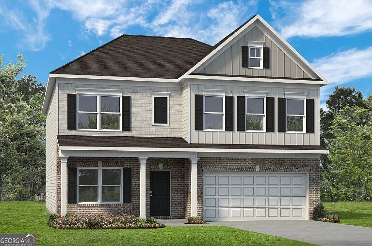Move in Ready May 2025! The James plan in the Jackson Farm community, built by Smith Douglas Homes. Jackson Farm is a vibrant swim community! Designed with flexibility in mind, this home features a spacious separate dining room, an inviting firestide family room, and a first floor bedroom with a full bath - perfect for guests! The well-appointed kitchen boasts granite countertops, upgraded cabinetry, a stylish tile backsplash, a generous pantry, and a large island. A butler's pantry connects the dining room and kitchen, making entertaining effortless. The oversized mudroom off the garage provides a convenient drop zone for daily essentials. Upstairs, you'll find a spacious laundry room, an open loft ideal for a home office or play area, and a luxurious Owner's suite with a private sitting room. Two additional guest bedrooms and two full baths complete the second floor. This home sits on a beautiful wooded homesite and includes a covered patio for outdoor enjoyment. Both levels feature soaring 9-ft ceilings for an open airy feel. Photos are representative of plan not of actual home to be built. Seller incentives available with the use of a preferred lender.