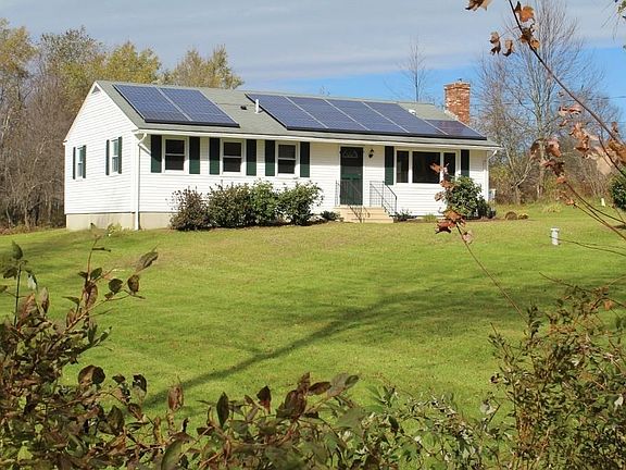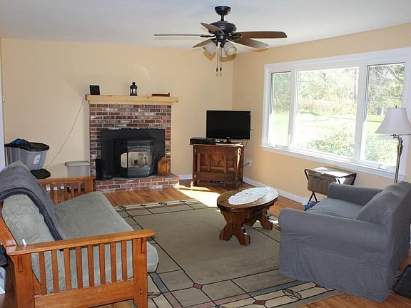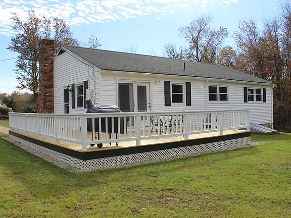 Very well kept 3 Bedroom Ranch on nicely landscaped 1.3 acre lot and located on dead-end lane just off of Rt 122 North of Barre Center. Updated over the years with replacement windows & patio door, fresh paint, custom cherry kitchen, attractive laminate flooring and fireplace with pellet insert. Spacious living room with southerly facing picture window for plenty of sunlight and the option of using the wood pellet fireplace insert for a cozy living space on cold nights. Nice size bedrooms with plenty of windows for natural lighting. Basement office/den/family room nicely finished with laminate floor and hard ceiling. Energy efficient with added insulation and air sealing. Huge wrap around deck with recently replaced decking overlooking the private side and back yards, perfect for enjoying cookouts and entertaining. Large lawn area around entire house with garden spaces and pretty paver/granite walkways leading to the house. Leased solar panels help with electric bills.